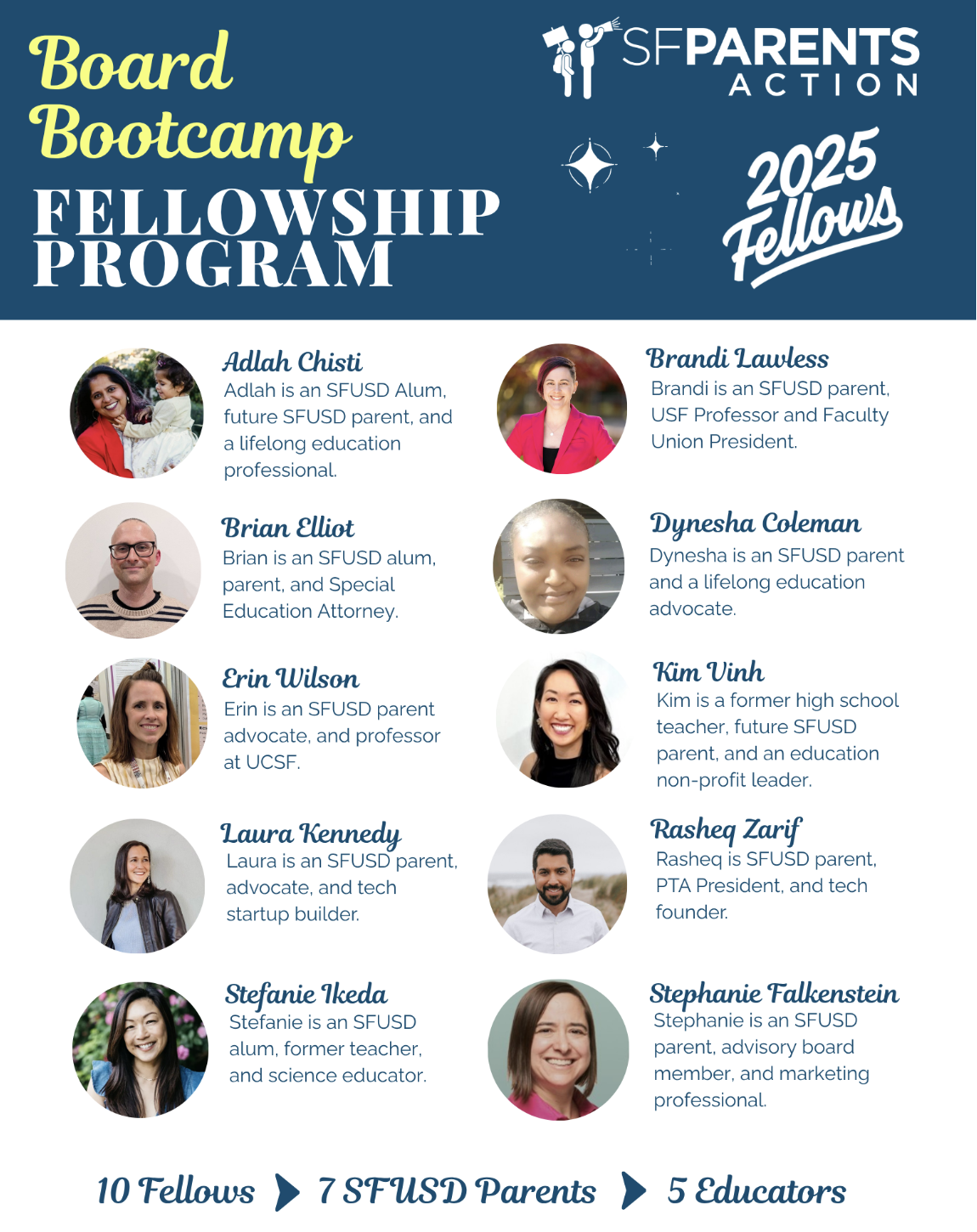 We’re so proud of this strong, diverse cohort—SFUSD parents, alums, educators, advocates, PTA presidents, advisory board members, and even former candidates for public office. Their thoughtful questions and lived experiences have already sparked rich conversations. This is a core program at SF Parents Action and we’re proud of its impact: three program graduates from previous cohorts currently serve on the SF Board of Education!